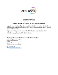 Auf dieser Seite finden Sie die Pressemitteilungen der Stadt Geislingen an der Steige als PDF zum Download.
